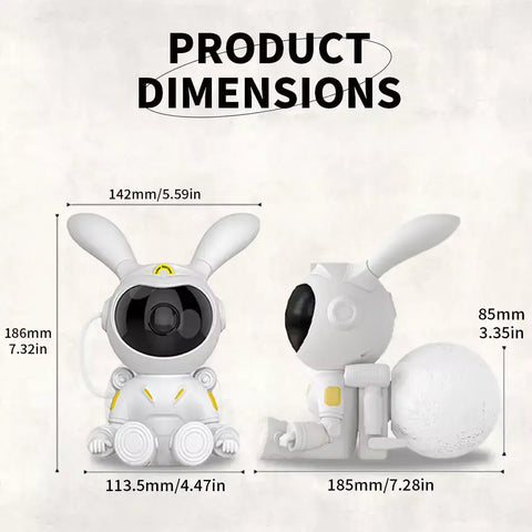 Crafted in the image of a Space Bunny, the starry night light projector exudes versatility. Through a magnetic connection, the astronaut's head can be easily adjusted to change the angle of the nebula projection. The modern and futuristic style adds an ornamental touch, making it more than just a galaxy star projector, but also a fashionable adornment.